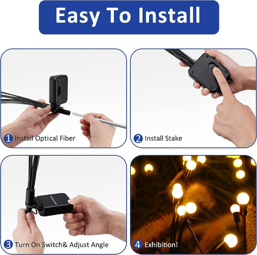 Firefly lights add sparkle to your yard. Create a romantic and festive atmosphere. It is the perfect outdoor decoration for patios, yards, lawns, and sidewalks, as well as any occasion for Halloween, Christmas, Weddings, New Year, parties, and more.